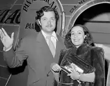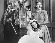 Welles's second film for RKO was The Magnificent Ambersons, adapted by Welles from the Pulitzer Prize-winning novel by Booth Tarkington. Toland was not available, so Stanley Cortez was named cinematographer. The meticulous Cortez worked slowly and the film lagged behind schedule and over budget. Prior to production, Welles's contract was renegotiated, revoking his right to control the final cut.[65] The Magnificent Ambersons was in production October 28, 1941 – January 22, 1942.[66] Much of the cast of Kane returned, including Joseph Cotten, Agnes Moorehead, and Ray Collins. It also features Anne Baxter as Lucy Morgan, Dolores Costello as Isabel Anderson Minafer, Tim Holt as George Amberson Minafer and Richard Bennett as Major Amberson. RKO cut more than forty minutes of footage and added a happy ending, against Welles's wishes. Bernard Herrmann wrote some of the score but demanded his name be removed from the credits after the film was edited. The film that survives is still considered a classic. Molly Haskell writes: "Orson Welles so deftly manages rhythm and tone—a complex blend of irony and empathy—and the intertwining of aural and visual effects that, even as its time rolls relentlessly on and bitter memories accumulate, we constantly feel the exhilaration of virtuoso storytelling. Though less flashy than Citizen Kane, Welles's astonishing debut of the year before, Ambersons cuts deeper, and without the magnetizing hulk of Welles at its center, it's more genuinely polyphonic."[67] François Truffaut asked, "if Flaubert reread Quixote every year, why can't we see Ambersons whenever possible?"[68]