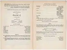 A revised production of Katharine Cornell's Romeo and Juliet opened December 20, 1934, at the Martin Beck Theatre in New York.[17]: 331–332 [33] The Broadway production brought the 19-year-old Welles (now playing Tybalt) to the notice of John Houseman, a theatrical producer who was casting the lead role in the debut production of one of Archibald MacLeish's verse plays, Panic.[34]: 144–158 On March 22, 1935, Welles made his debut on the CBS Radio series The March of Time, performing a scene from Panic for a news report on the stage production.[20]: 70–71