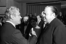 Welles received an Academy Award and three Grammy Awards among other numerous honors such as Academy Honorary Award in 1970, the Golden Lion in 1970, the AFI Life Achievement Award in 1975, and the British Film Institute Fellowship in 1983. In 2002, he was voted the greatest film director of all time in two British Film Institute polls among directors and critics.[6][7] In 2018, he was included in the list of the 50 greatest Hollywood actors of all time by The Daily Telegraph.[8] Welles had three marriages, including one with Rita Hayworth, and three children.