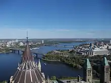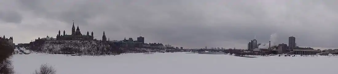 From Lake Timiskaming, the river flows southeast to Ottawa and Gatineau, where it tumbles over Chaudière Falls and further takes in the Rideau and Gatineau rivers.