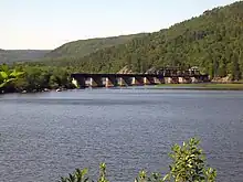 The river flows through large areas of deciduous and coniferous forest formed over thousands of years as trees recolonized the Ottawa Valley after the ice age.[4] Generally, the coniferous forests and blueberry bogs occur on old sand plains left by retreating glaciers, or in wetter areas with clay substrate. The deciduous forests, dominated by birch, maple, beech, oak and ash occur in more mesic areas with better soil, generally around the boundary with the La Varendrye Park.[5][6] These primeval forests were occasionally affected by natural fire, mostly started by lightning, which led to increased reproduction by pine and oak, as well as fire barrens and their associated species.[7] The vast areas of pine were exploited by early loggers.[8] Later generations of logging removed hemlock for use in tanning leather, leaving a permanent deficit of hemlock in most forests.[9] Associated with the logging and early settlement were vast wild fires which not only removed the forests, but led to soil erosion.[10] Consequently, nearly all the forests show varying degrees of human disturbance. Tracts of older forest are uncommon, and hence they are considered of considerable importance for conservation.[11]