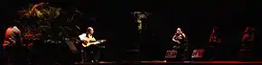 His album Fuente y Caudal (Fountain and Flow) has been cited by many to have changed the world of flamenco guitar beyond traditional flamenco culture.[89] Along with Enrique Morente and Camarón de la Isla, de Lucía was the first artist to break away from traditional flamenco and form what is now known as nuevo flamenco.[90] As a composer, de Lucía was the first Spanish artist to mix jazz with Andalusian music in a more or less systematic way.[91] This includes, but is not limited to, his collaborations with Di Meola, McLaughlin, and Pedro Iturralde.[92][93]