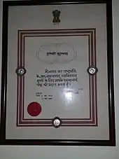 Several intended recipients, including musician Hemanta Kumar Mukherjee, sitar player Vilayat Khan,[5] academic and author Mamoni Raisom Goswami,[6] journalist Kanak Sen Deka[7] and noted Bollywood screenwriter Salim Khan, have declined the Padma Shri for various reasons.[8] Some intended recipients, such as environmental activist Sunderlal Bahuguna[9] and English billiards champion Michael Ferreira,[7] have refused the honour but have subsequently accepted a more prestigious one such as the Padma Bhushan or Padma Vibhushan. Other individuals, such as film-maker Aribam Syam Sharma,[10] author Phanishwar Nath 'Renu',[11] Punjabi author Dalip Kaur Tiwana[12] and noted poet Jayanta Mahapatra,[13] have returned the honour after initially accepting it.