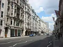 Several other portions of the old highway were leased for construction. At the east end, land was leased to Sir Philip Warwick who built Warwick House (now the location of Warwick House Street) and to Sir John Denham; this parcel of land became part of the grounds of Marlborough House. Portions leased at the west end included the land between St James's Palace and the tennis court at the corner of St James's Street, and a parcel of land leased to the Duchess of Cleveland that became the site of 8–12 Cleveland Row and Stornoway House.[4] The 18th-century London bookseller Andrew Millar also lived in a townhouse designed by Robert Adam, at 34 Pall Mall.[12]