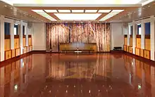 The Great Hall in Parliament House. The tapestry at the rear of the room is an enlarged version of an Arthur Boyd painting, and at 20 by 9 metres (66 ft × 30 ft) is one of the largest tapestries in the world.[17]
