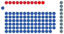 The Parliament of Singapore is unicameral – all Members of Parliament (MPs) make up a single chamber, and there is no senate or upper house. At present, the effect of the Constitution of Singapore and other legislation is that there can be a maximum of 105 MPs. Ninety-three are elected by the people while up to 12 Non-constituency Members of Parliament (NCMPs)[33] and up to nine Nominated Members of Parliament (NMPs) may be appointed.[34] After the 2020 general election, 93 MPs were elected[35] and two NCMPs were appointed (or, in the terms of the Parliamentary Elections Act,[36] declared elected) to Parliament.[37]