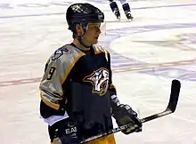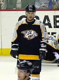 Due to the NHL lockout, Kariya was professionally inactive for the 2004–05 season, using the time to recover from several nagging injuries.[6] He incorrectly predicted that the dispute would last "a year-and-a-half [or] two years,"[127] as the players and owners agreed on a new collective agreement in July 2005. With NHL play set to resume for the 2005–06 season, Kariya became an unrestricted free agent in August 2005. Entertaining offers from ten different teams,[6] Kariya signed a two-year, $9 million contract with the Nashville Predators on August 5, 2005,[128] making him the highest-paid player in team history.[129] Predators general manager David Poile heralded the acquisition as "unquestionably the biggest signing in [the] club's history". He ultimately chose the Predators for their style of play emphasizing skating and speed. Following the lockout, the NHL adopted several rule changes meant to benefit fast and skilled players such as Kariya.[6] He was one of many NHL players who had publicly spoken out regarding the NHL's failed attempts in the past to reduce obstruction. During an earlier NHL-sponsored conference call with the media, Kariya criticized NHL rules, stating, "As an offensive player, I'm going through the neutral zone, and I have a player tugging me the whole way. If I don't go down, I'm not going to get a call because they are not going to make the call."[130] Having come off the worst statistical season of his career in 2003–04, Kariya was admittedly looking to have a bounce-back season.[129]