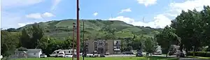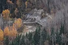 Fort Fork site, located in the Peace River Wildland Provincial Park is a national historic site.[20] The fort was erected in 1792 by the North West Company. Alexander Mackenzie wintered at Fort Fork in 1792 as did David Thompson in 1802. The fort was abandoned in 1805 and has since been almost completed eroded by the Peace River.[21] A flag planted at Fort Fork's former site is all that remains. Mackenzie Cairn was erected on River Lot 19 in the Municipal District (M.D.) of Peace No. 135 in 1929 to commemorate Fort Fork.