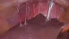 Laparoscopy can visualize "violin-string" adhesions, characteristic of Fitz-Hugh–Curtis perihepatitis and other abscesses that may be present.[23]