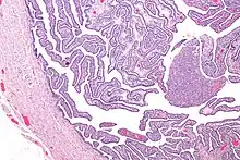 Pelvic inflammatory disease, also known as pelvic inflammatory disorder (PID), is an infection of the upper part of the female reproductive system, namely the uterus, fallopian tubes, and ovaries, and inside of the pelvis.[5][2] Often, there may be no symptoms.[1] Signs and symptoms, when present, may include lower abdominal pain, vaginal discharge, fever, burning with urination, pain with sex, bleeding after sex, or irregular menstruation.[1] Untreated PID can result in long-term complications including infertility, ectopic pregnancy, chronic pelvic pain, and cancer.[2][3][4]