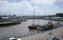 There are no motorways in Pembrokeshire; the nearest is the M4 motorway from London which terminates at the Pont Abraham services in Carmarthenshire some 46 miles (74 km) from Haverfordwest. The A40 crosses Pembrokeshire from the border with Carmarthenshire westwards to Haverfordwest, then northwards to Fishguard.[92] The A477 from St. Clears to Pembroke Dock is 24 miles (39 km) long, of which only 2 miles (3.2 km) are dual carriageway. The Cleddau Bridge, toll-free from 28 March 2019,[93] carries the A477 across the Cleddau Estuary. The A478 traverses eastern Pembrokeshire from Tenby in the south to Cardigan, Ceredigion in the north, a distance of 30 miles (48 km). The A487 is the other major route, running northwest from Haverfordwest to St Davids, then northeast following the coast, through Fishguard and Newport, to the boundary with Ceredigion at Cardigan.[92] Owing to length restrictions in Fishguard, some freight vehicles are not permitted to travel northeast from Fishguard but must take a longer route via Haverfordwest and Narberth.[94] The B4329 former turnpike runs from Eglwyswrw in the north to Haverfordwest across the Preselis.[95]