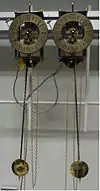 In 1656 the Dutch scientist Christiaan Huygens built the first pendulum clock.[38] This was a great improvement over existing mechanical clocks; their best accuracy was improved from around 15 minutes deviation a day to around 15 seconds a day.[39] Pendulums spread over Europe as existing clocks were retrofitted with them.[40]