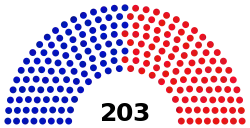 The Pennsylvania House of Representatives is the lower house of the bicameral Pennsylvania General Assembly, the legislature of the U.S. state of Pennsylvania. There are 203 members, elected for two-year terms from single member districts.[1][2]