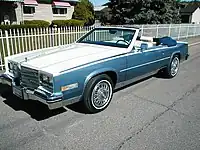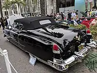 These included the Cadillac Eldorado, Buick Roadmaster Skylark, Oldsmobile 98 Fiesta, Imperial Newport, Chrysler New Yorker, Chrysler 300 and Chrysler Windsor, Packard Hawk, and Packard Caribbean.[13] All models had two-door convertible or hardtop body styles, built on a platform shared with far less expensive models.[14] The Eldorado represented 0.5% of Cadillac's total sales in 1953, with 1,690 Buick Skylarks, 458 Oldsmobile 98 Fiestas, and 750 Packard Caribbeans sold.[14] The styling of 1950s these luxury cars has been described as a "baroque excess".[15]