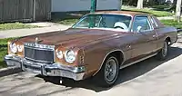 The mid-size Chrysler Cordoba was introduced for 1975 as the company's first coupe produced specifically for the personal luxury market[66] (despite the company declaring earlier that there would "never be a smaller Chrysler"). The Cordoba used vintage styling cues like Rolls-Royce-style radiator grilles, opera windows, and vinyl roofs. By 1975, other models which had entered the personal luxury car segment included the AMC Matador (second generation), Buick Regal, Dodge Charger (fourth generation). The two highest-selling personal luxury cars for 1975 were the Chevrolet Monte Carlo and the Chrysler Cordoba.[67]
