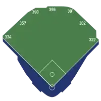 | Field size | Left field Line – 334 feet (102 m) Left field – 357 feet (109 m) Left field alley – 390 feet (119 m) Center field – 396 feet (121 m) Right field alley – 391 feet (119 m) Right field – 382 feet (116 m) Right field line – 322 feet (98 m) ![]() |