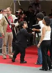 In 2006, Dinklage co-starred with Vin Diesel in Find Me Guilty, a courtroom drama directed by Sidney Lumet. The film tells the true story of the longest Mafia trial in American history; Dinklage played Ben Klandis, the lead defense attorney.[38] Critical reaction to the film was mostly positive, though it was a commercial failure.[39][40] Writing for Chicago Sun-Times, film critic Roger Ebert praised Dinklage's performance, saying that the character he plays stands apart as "concise, articulate and professional."[38] The same year, he portrayed the character Marlowe Sawyer in episodes of Nip/Tuck.[35] He played a fictionalized version of himself in an episode of the HBO series Entourage and appeared in NBC's 30 Rock as Stewart.[35][41] The same year, Dinklage appeared in the British romantic comedy Penelope playing Lemon, a tabloid reporter.[42] The film received mixed reviews from critics.[43]