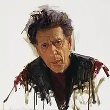 Apart from his music career, Glass had a moving company with his cousin, the sculptor Jene Highstein, and also worked as a plumber and cab driver (during 1973 to 1978). He recounts installing a dishwasher and looking up from his work to see an astonished Robert Hughes, Time magazine's art critic, staring at him.[37] During this time, he made friends with other New York-based artists such as Sol LeWitt, Nancy Graves, Michael Snow, Bruce Nauman, Laurie Anderson, and Chuck Close (who created a now-famous portrait of Glass).[38] (Glass returned the compliment in 2005 with A Musical Portrait of Chuck Close for piano.)
