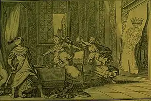 Throughout the late Renaissance and Elizabethan eras, the image of Philomela and the nightingale incorporated elements of mourning and beauty after being subjected to an act of violence. In his long poem "The Steele Glas" (1576), poet George Gascoigne (1535–1577) depicts "Philomel" as the representative of poetry (Poesys), her sister Progne as satire (Satyra), and Tereus as "vayne Delight".[42] The characterization of Philomela and the nightingale was that of a woman choosing to exercise her will in recovering her voice and resisting those forces which attempts to silence her. Critics have pointed to Gascoigne's use of the Philomela myth as a personal appeal and that he was fighting in verse a battle with his enemies who violently opposed his poems.[43][44] In Gascoigne's poem "The complaynt of Philomene" (1576), the myth is employed to depict punishment and control.[45]