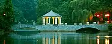 The park's first bathhouse was opened in 1911.[23] Swimming in the lake was allowed until 1973, when the city opened a pool in the park.[23] The same year the first bathhouse was opened, the Peace Monument, a Confederate monument, was dedicated in the park, near the 14th Street gate.[24]