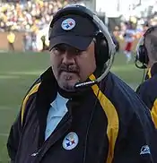 Dave Wannstedt, a Pittsburgh area native and former Pitt player, graduate, and graduate assistant coach (1975–78), who had recently resigned as head coach of the NFL's Miami Dolphins, succeeded Harris as Pitt's head coach on December 23, 2004. Wannstedt's return to his alma mater was marked by a return to the use of the wordmark "Pitt" as a logo, including its display on the football helmets.[89]