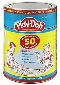 Play-Doh is a modeling compound for young children to make arts and crafts projects. The product was first manufactured in Cincinnati, Ohio, United States, as a wallpaper cleaner in the 1930s.[1] Play-Doh was then reworked and marketed to Cincinnati schools in the mid-1950s. Play-Doh was demonstrated at an educational convention in 1956 and prominent department stores opened retail accounts.[2]