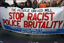 Police brutality can be associated with racial profiling. Differences in race, religion, politics, or socioeconomic status often exist between police and the citizenry. Some police officers may view the population (or a particular subset thereof) as generally deserving of punishment. Portions of the population may perceive the police to be oppressors. In addition, there is a perception that victims of police brutality often belong to relatively powerless groups, such as minorities, the disabled, and the poor.[72] According to a 2015 and 2016 project by The Guardian, more white people are killed by police in raw numbers than black people are, but after adjusting this finding based on the fact that the black population is smaller than the white population, twice as many black people are killed by police per capita than white people are.[73][74] A 2019 study showed that people of color face a higher likelihood of being killed by police than white men and women do, that risk peaks in young adulthood, and men of color face a nontrivial lifetime risk of being killed by police.[75][76]