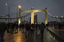 During the Vietnam War, anti-war demonstrations were sometimes quelled through the use of billy clubs and tear gas. One notorious assault took place during the August 1968 Democratic National Convention in Chicago. Some rogue police officers took off their badges, in order to escape identification, and brutally assaulted protesters. Journalists were assaulted inside the convention hall.[55] The actions of the police were later described as a "police riot" in the Walker Report to the U.S. National Commission on the Causes and Prevention of Violence.[56] On May 15, 1969, police opened fire on protesters in People's Park in Berkeley, California, which resulted in serious injuries for some protesters.[57] The 1970 Kent State shootings of 13 university students by the National Guard have been described as the culmination of such violent confrontations.[58]