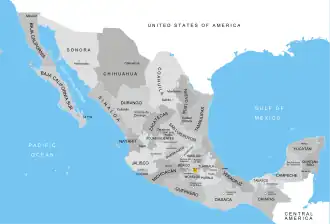 The United Mexican States (Spanish: Estados Unidos Mexicanos) is a federal republic composed of 32 federal entities: 31 states[1] and Mexico City, an autonomous entity. According to the Constitution of 1917, the states of the federation are free and sovereign in all matters concerning their internal affairs.[2] Each state has its own congress and constitution.