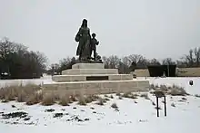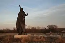 A statue of Standing Bear was erected in his honor at the intersection of Highway 60 and Standing Bear Parkway in Ponca City. In the late 20th century, the city developed a park and museum named in his honor. In addition to the Standing Bear Museum, the 63-acre park includes more than eight fully developed acres with off street parking, a one-acre pond and a walking trail.[16]