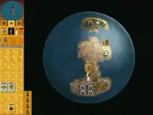 Bullfrog Productions released Populous in 1989, followed by Populous II in 1991.[10] The Populous series inspired the term "god game", with players assuming the role of an omniscient being who leads their people to new territories or into battle.[13] Populous: The Beginning was the first in the series developed with entirely 3D graphics, allowing the environment to be scaled and rotated in real time (though characters remained two-dimensional.)[14][15] The game was published more than four years after Populous II, as Bullfrog waited for hardware advancements to enable a new approach,[16] and was the first in the series to be made without Populous creator Peter Molyneux, who had sold Bullfrog to Electronic Arts in 1995 and left after the release of Dungeon Keeper to form Lionhead Studios.[6][17] Producer Stuart Whyte said of the work, "We're really proud of what we've done in software because it does look really nice."[1]
