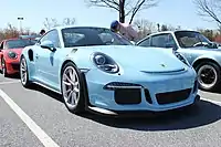 The Club Coupe was introduced to celebrate the 60th anniversary of the Porsche Club of America. Just 60 Club Coupes were produced for the 2016 model year.[7] Notable changes from the standard GTS include 20" alloy wheels (the same as those found on the 2014 50th Anniversary Edition) which pays homage to the "Fuchs"-style wheels on classic 911s, special "Club Blau" exterior paint,[8] SportDesign bodywork, and a "ducktail"-style spoiler which references classic motorsports-oriented 911s, for example the Carrera RS 2.7. The interior features Club Coupe-specific dashboard trim, door sills, and center console lid.[9]