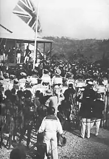 In 1883, Queensland attempted to annex the south-eastern corner of the New Guinea Island (subsequently known as Papua), fearing that Germany would take control of the entire eastern half of the island.[5] British authorities refused to approve the annexation following the German annexation of New Guinea in 1884, but four years later it established a protectorate over Papua as British New Guinea.