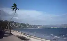 The wet season starts in December and ends in May; the dry season covers the remaining six months. This is due to the south easterly trade winds running parallel to the coast, and the city being surrounded by high mountains. The average high temperatures range from 28 to 32 °C (82.4 to 89.6 °F) depending on time of year, while the average low temperature shows very little seasonal variation, hovering around the 23 °C (73.4 °F) mark. It tends to be slightly cooler in the city during the dry season.