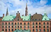 The Speicherstadt, one of Hamburg's architectural icons today, is a large wharf area of 350,000 m2 floor area on the northern shore of the river, built in the 1880s as part of the free port and to cope with the growing quantity of goods stored in the port.