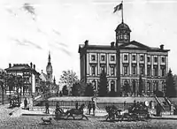 Portland developed a reputation early in its history as a hard-edged and gritty port town.[33] Some historians have described the city's early establishment as being a "scion of New England; an ends-of-the-earth home for the exiled spawn of the eastern established elite."[34] In 1889, The Oregonian called Portland "the most filthy city in the Northern States", due to the unsanitary sewers and gutters,[35] and, at the turn of the 20th century, it was considered one of the most dangerous port cities in the world.[36] The city housed a large number of saloons, bordellos, gambling dens, and boardinghouses which were populated with miners after the California Gold Rush, as well as the multitude of sailors passing through the port.[33] By the early 20th century, the city had lost its reputation as a "sober frontier city" and garnered a reputation for being violent and dangerous.[33][37]