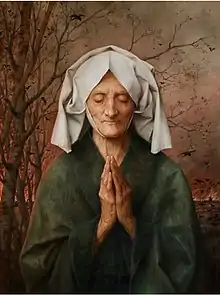 In a rationalist approach, praying encompasses three aspects. First, 'logos', as the "idea" of the sender, secondly 'rhemata' as the words to express the idea, and thirdly 'rhemata' and 'logos', to where the idea is sent (e.g. to God, Allah). Thus praying is not a conversation with God, or Jesus but a one-way direction to the divine.[44] Among the Abrahamic religions, Islam, Orthodox Christianity and Hasidic Judaism are likely most adhering to this concept, also because it does not allow secondary mythologies, and has taken its spiritual roots from Hellenistic philosophy, particularly from Aristotle.[45]
