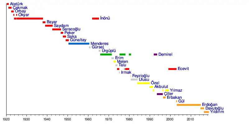 ![]() İsmet İnönü 30 October 1923 – 22 November 1924 4 March 1925 – 25 October 1937 20 November 1961 – 20 February 1965 | |