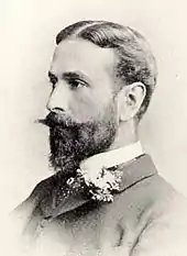 On his penultimate day aboard the Queen's yacht, 30 August 1885, Louis was promoted to the rank of commander.[44][45] The next four years were spent in the shore establishments HMS Excellent and HMS Vernon on half-pay, on HMS Cambridge, very briefly at Milford Haven in August 1886, and on board HMS Dreadnought in the Mediterranean.[46] Irish nationalist Member of Parliament (MP) Willie Redmond and Liberal MP Charles Conybeare both questioned Battenberg's appointment to Dreadnought in the British House of Commons. Conybeare asked, "What special qualifications have entitled a foreigner to be promoted over the heads of some 30 British officers?"[7] First Lord of the Admiralty Lord George Hamilton said, "Captain Stephenson, who commands the Dreadnought, applied for Prince Louis of Battenberg to fill the appointment. I may add that another officer who is about to command a large iron-clad in the Mediterranean has made a similar application."[7] He added that 22 commanders junior to Battenberg held similar appointments,[7] and that Battenberg was a naturalised British subject.[8] Another Liberal MP, Edward Pickersgill, backed up by Conybeare and Irish nationalist Charles Tanner, questioned the propriety of Battenberg's appointment to the Navy in 1868, given Battenberg's failure to get the required medical certificate, and suggested that he only got in the Navy because of royal favour.[9]