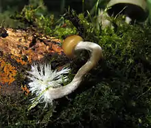 Psilocybe aztecorum is a species of psilocybin mushroom in the family Hymenogastraceae. Known from Arizona, Colorado, central Mexico, India and Costa Rica, the fungus grows on decomposing woody debris and is found in mountainous areas at elevations of 2,000 to 4,000 m (6,600 to 13,100 ft), typically in meadows or open, grassy conifer forests. The mushrooms have convex to bell-shaped caps 1.5–2 cm (0.6–0.8 in) in diameter, atop slender cylindrical stems that are up to 7.5 cm (3.0 in) long. The color of the caps changes with variations in hydration, ranging from dark chestnut brown to straw yellow or whitish when dry. The base of the stem is densely covered with conspicuous white rhizomorphs, a characteristic uncommon amongst Psilocybe species.