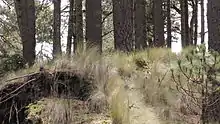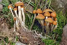 A lignicolous species, Psilocybe aztecorum lives in and decays dead wood, leaves, sticks, or other similar organic debris. Mushrooms typically fruit in groups of 5 to 20, sometimes in bundles. Usual substrates include wood debris buried in soil, twigs or very rotten logs, and, rarely, pine cones. The mushroom is found in woodlands (a low-density forest or wooded area that allows sunlight to penetrate to the forest floor) containing Hartweg's pine (Pinus hartwegii) in addition to grasses such as Festuca tolucensis and Muhlenbergia quadridentata, and the herbaceous plant Alchemilla procumbens, at elevations of 3,200–4,000 m (10,500–13,100 ft).[20] Heim found the type specimens at an altitude of 3,500 m (11,500 ft) in an alpine pine forest.[3] P. aztecorum fruits from August to October.[1]