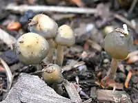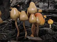 In 1978, Mexican mycologist and Psilocybe specialist Gastón Guzmán emended the description of P. aztecorum to include the color variation of the cap resulting from its strongly hygrophanous nature, the mycenoid form, the rhizoids at the base of the stem, the lignicolous habitat, and the size of the spores—all features that he thought were either confused, or not sufficiently detailed, in Heim's original description.[5] In the same publication, Guzmán also characterized the variety P. aztecorum var. bonetii, distinguished from the main variety by its smaller spores.[5] He had originally described this variant as a separate species, Psilocybe bonetii, in 1970.[6] Further, Guzmán later published Psilocybe natarajanii, originally described by him from Tamil Nadu in southern India,[7] as a synonym of P. aztecorum var. bonetii;[8] this putative synonymy, however, is confirmed by neither MycoBank nor Index Fungorum.[9][10] Guzmán called the main variety P. aztecorum var. aztecorum; for this reason, the species authority is often cited as "P. aztecorum var. aztecorum R. Heim emend. Guzmán".[11][12]