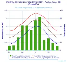 - "U.S. Climate Normals Quick Access – Station: Pueblo MEM AP, CO". National Oceanic and Atmospheric Administration. Archived from the original on 2023-07-14. Retrieved February 5, 2023.