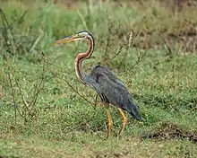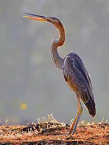 The purple heron (Ardea purpurea) is a wide-ranging heron species. It breeds in Africa, central and southern Europe, and southern and eastern Palearctic. The Western Palearctic populations migrate between breeding and wintering habitats whereas the African and tropical-Asian populations are primarily sedentary, except for occasional dispersive movements.
