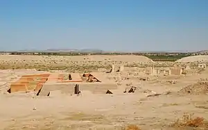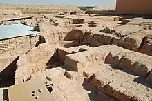 In the mid-19th century, a modern village (al-Mishrifeh) was built within the ancient site.[160] Houses were built on top of the royal palace floors, damaging them to a certain degree, but also protecting the underlying ruins.[161] In 1982, the Syrian Directorate-General of Antiquities and Museums resettled the inhabitants in a new village next to the ancient tell, thus making the site available for modern archaeological research.[161]