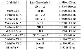 - Morandi Bonacossi, Daniele (2009). Parr, Peter J. (ed.). "Tell Mishrifeh and its Region During The EBA IV and the EBA-MBA Transition. A First Assessment". PEF Annual. The Palestine Exploration Fund. IX: The Levant in Transition. ISBN 978-1-90435-099-6.