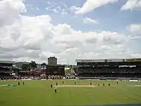 The Queen's Park Oval is a sports stadium in Port of Spain, Trinidad and Tobago, used mostly for cricket matches. It opened in 1896. Privately owned by the Queen's Park Cricket Club, it is currently the second largest capacity cricket ground in the West Indies with seating for about 20,000.[1]