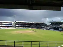 The West Indies were chosen as hosts for the 2007 Cricket World Cup, with the Queen's Park Oval selected as one of the venues. Renovation work commenced immediately to prepare the ground for the matches. These, however, suffered drawbacks. Labour shortages hampered the efforts of the construction workers. Two new stands at the Queen's Park Oval were constructed for the event. Initially the International Cricket Council expressed concerns that the ground would not be ready in time, with Development Director Don Lockerbie stating that "the ante had to be upped."[60] An earthquake in late February that measured 5.1 on the Richter magnitude scale caused damaged to the fledgling stands.[61] Work which had due to be completed by December 2006 dragged into the spring of the following year, with opening matches of the competition due to start in March. Nevertheless, the new pavilion was unveiled in time for the matches. The ground was celebrated as "the only venue in the West Indies, and one of four in the world to host more than 50 Test matches and 51 ODIs" during a ceremony to open the new stands.[62] Once the tournament had gotten underway, several Group B matches were played at the Queen's Park Oval between teams such as Bermuda, India, Bangladesh and Sri Lanka. These matches included a score of 413/5 by India against Bermuda on March 19, which remains the highest total made in an ODI at the Queen's Park Oval.[63] None of the final stage games were played at the ground, with the Super Eight stages all being played at either the Providence Stadium or the Sir Vivian Richards Stadium.