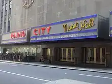 Radio City Music Hall is an entertainment venue and theater at 1260 Avenue of the Americas, within Rockefeller Center, in the Midtown Manhattan neighborhood of New York City. Nicknamed "The Showplace of the Nation", it is the headquarters for the Rockettes. Radio City Music Hall was designed by Edward Durell Stone and Donald Deskey in the Art Deco style.