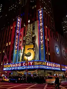 The International Music Hall evolved into a theater called Radio City Music Hall.[48] The names "Radio City" and "Radio City Music Hall" derive from one of the complex's first tenants, the Radio Corporation of America (RCA), which planned a mass media complex called Radio City on the west side of Rockefeller Center.[49] Over time, the appellation of "Radio City" devolved from describing the entire complex to just the complex's western section.[50] Radio City Music Hall was the only part of the complex that retained the name by 1937, and the name "Radio City" became shorthand for the theater.[51]
